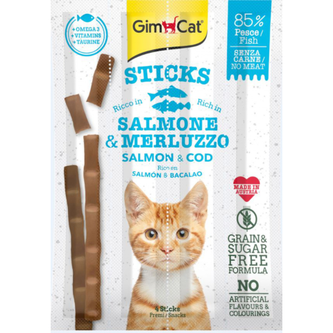 Macskák számára kifejlesztett, ízletes gabonamentes kiegészítő eledel. A GimCat Stick Lazac egy macskák számára kifejlesztett, ízletes kiegészítő eledel. Gabonamentes recept alapján, értékes vitaminok és taurin felhasználásával készült, lazacos és pis
