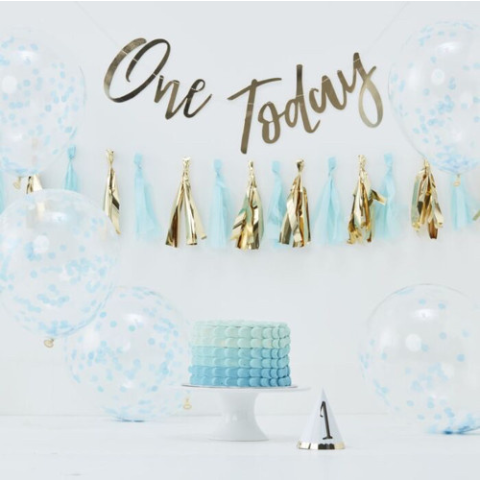 Party szett az első szülinapra kék színben Kisfiús ünnepi kiegészítők egy varázslatos dobozban, kimondottan az első születésnapra. Ebben a csomagban minden dekorációs kiegészítőt megtalálsz, ami emlékezetessé teszi az első babazsúrt. Ezekkel a kel