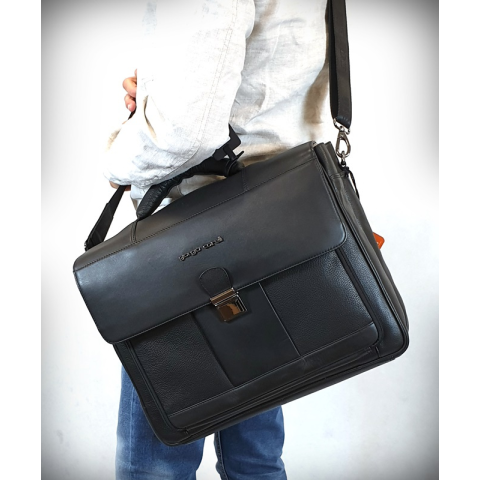 1 kép Giorgio Carelli fekete klasszikus laptoptartós nagy bőr aktatáska GC338800-002