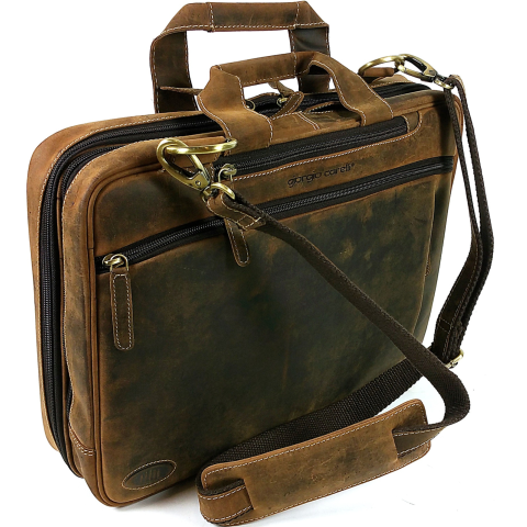 Giorgio Carelli nagy méretű laptoptartós irattáska. Klasszikus kétfogós, zippes modell .Erős, jó minőségű csiszolt zsírosbőrből készült, elején a sarokban márkajelöléses rátéttel.Fém ...