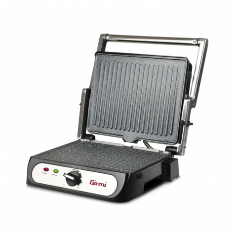 Girmi BS41 Bistecchiera – Dupla nyitható Petravera kőhatású sütőlapos grill és szendvicssütő ???????????? A Girmi BS41 egy sokoldalú, masszív inox házzal készült kontaktgrill, amely a modern konyha egyik leghasznosabb eszköze lehet. Kompakt mérete ellenér