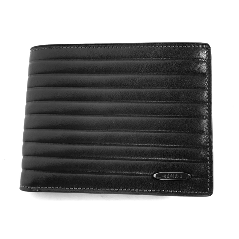 Egyedi megjelenésű, fekete GIUDI férfi pénztárca különleges, szépen erezett, selyemfényű, domborított csíkos nyomatos külsővel, háromszög alakú sötét metál márkalogóval, barkás fekete erezetű ...