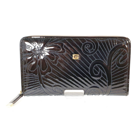 1 kép Giudi sötétbarna lakk, virág tűzéses nagy pénz-és irattárca 6802RFDR-08