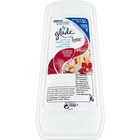 Légfrissítő - gél, kellemes illattal tölti meg a helyiséget A kellemes és friss légkörért otthonában vagy akár irodájában is a GLADE by Brise Japán kert illatú hagyományos légfrissítője gondoskodik. Ez a légfrissítő a gél elvén működik, amely egy elegáns fehér