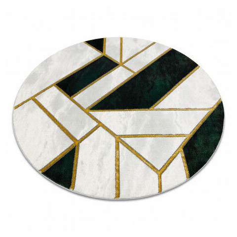 Elegáns, Geometriai Zöld-Arany Kerek Szőnyeg - 200 cm Ez a 200 cm átmérőjű kerek szőnyeg modern és elegáns megjelenést kölcsönöz otthonának. A márványhatású fehér alapon geometrikus mintázatban elhelyezkedő smaragdzöld és arany árnyalatok luxus érzet...