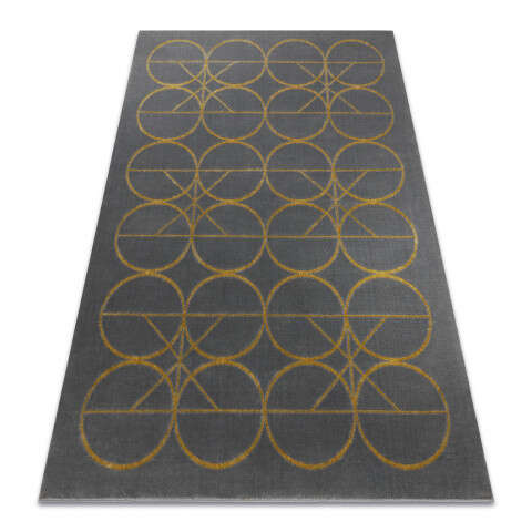 Elegáns szürke-arany körök mintás szőnyeg 140x190 cm Ez a gyönyörű szőnyeg modern és elegáns megjelenést kölcsönöz otthonának. A szürke alapon arany körök mintája kifinomult és stílusos. Tökéletes választás nappaliba, hálószobába vagy akár irodába is...