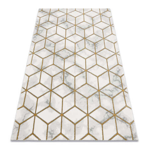 Elegáns márványmintás szőnyeg arany vonalakkal - 120x170 cm Ez a gyönyörű szőnyeg modern és elegáns megjelenést kölcsönöz otthonának. A krémszínű alapon arany vonalakkal kirajzolt márványhatású kocka minta időtlen eleganciát sugároz. Tökéletes válasz...