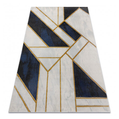 Elegáns Geometriai Szőnyeg Sötétkék és Arany Színben - 160x220 cm Ez a lenyűgöző szőnyeg modern geometriai mintájával és elegáns sötétkék és arany színkombinációjával feldobja otthonát. A márványhatású alap kellemes kontrasztot képez a merész geometr...