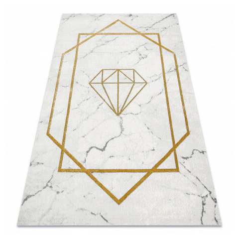Elegáns márványhatású szőnyeg arany díszítéssel - 200x290 cm ✨ Ez a gyönyörű szőnyeg feldobja otthonod eleganciájával és modern dizájnjával. A márványhatású krémszínű alapra arany színű geometrikus minták és egy elegáns gyémánt motívum került, ami l...