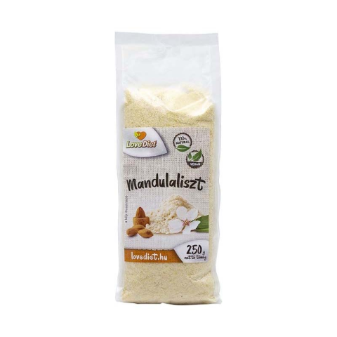 A Love Diet mandulaliszt nagy mennyiségben tartalmaz fehérjét, ásványi anyagokat, vitaminokat és rostot. Magas a fehérje tartalma, ezért a vegetáriánus és a vegán étrend nagyszerű alapanyaga is lehet. Levegősebb és lágyabb tészták készítésére is alkalmas.