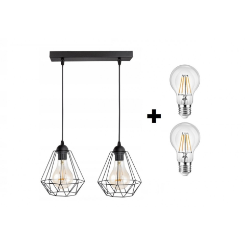 3 kép Glimex Diamond állítható függőlámpa fekete 2x E27 + ajándék LED izzó