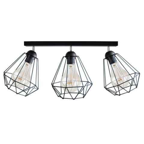 1 kép Glimex Diamond drót búrás állítható mennyezeti lámpa fekete 3x E27