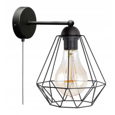 1 kép Glimex Diamond drót búrás fekete fali lámpa kapcsolóval 1x E27
