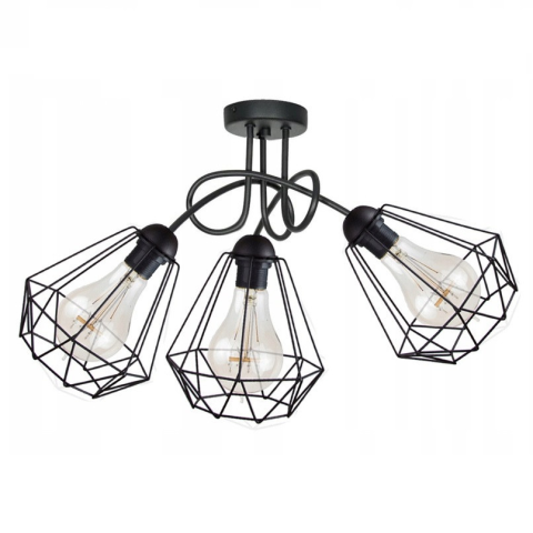 1 kép Glimex Diamond drót búrás fix mennyezeti lámpa fekete 3x E27