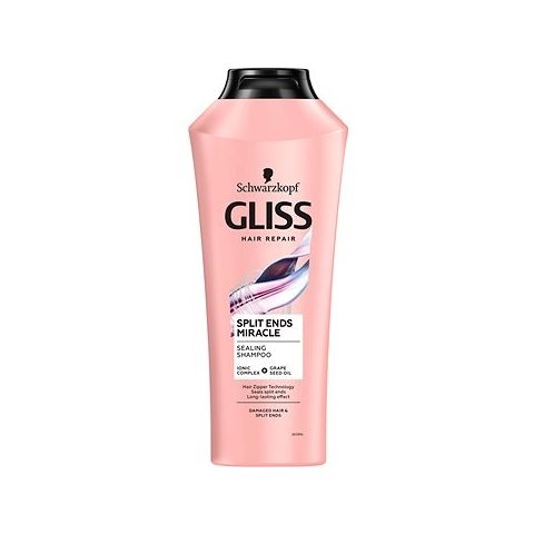 Sampon nők számára - hagyományos sampon, minden hajtípusra ajánlott, fényesítő, hidratáló, hajsimító és regeneráló hatás, vitaminos, 400 ml-es kiszerelésben A hosszú hajad sérült és töredezettek a hajvégeid? A SCHWARZKOPF GLISS Split Ends Miracle Shampoo sampon a hajtövektől a hajvégekig egyenlíti ki a felszíni különbségeket, miközben megköti és tartósan