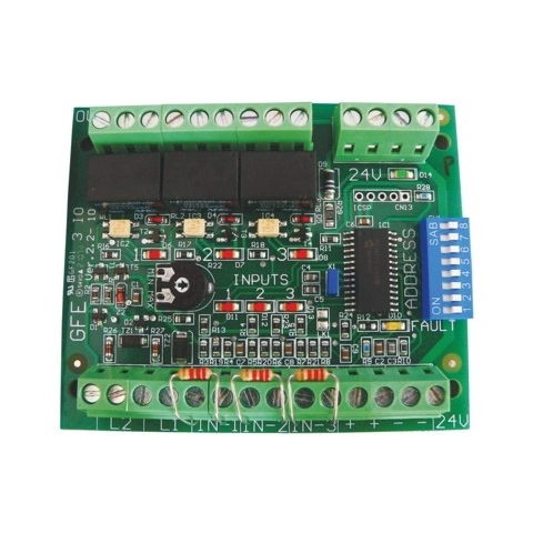 GLOBAL FIRE címezhető tripla be - és kimeneti modul. A tűzjelző központtal kapcsolatban álló külső rendszer kontaktusának figyelésére és vezérlésre a relék segítségével. 3 bemenet, 3 relé kimenet (50 Vdc @ 1 A). Működési hőmérséklet: 0-40 °C, táp: hurokt