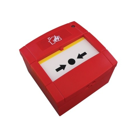 GLOBAL FIRE címezhető kézi jelzésadó, kétszínű LED az állapotkijelzésre. Működési hőmérséklet 0-85 °C, 30 db/hurok, IP24 ellenállóság, méret: 87x87x50 mm, 3 év garancia