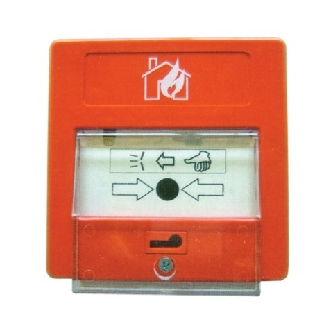 GLOBAL FIRE analóg címezhető kézi jelzésadó, lapos forma, mozgó műanyag tető a véletlen riasztások elkerülésére, kétszínű LED az állapotkijelzésre, kulccsal visszaállítható Működési hőmérséklet 0-50 °C, IP24 ellenállóság, méret: 90x90x28 mm, 3 év garanci