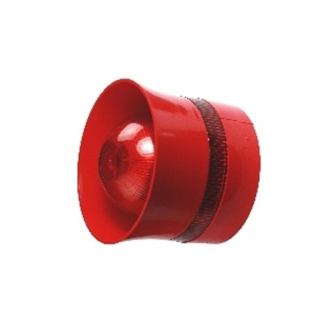 GLOBAL FIRE címezhető huroktáplált felületreszerelhető izolátoros hang- és fényjelző, IP65, EN54-3, alacsony fogyasztás, max. 32 eszköz/hurok, tápfeszültség 20~30 Vdc, áramfogyasztás nyugalmi/hangjelzés 0,5/2,6-7,5 mA, hangnyomás 102~110 dB@1 m, piros sz