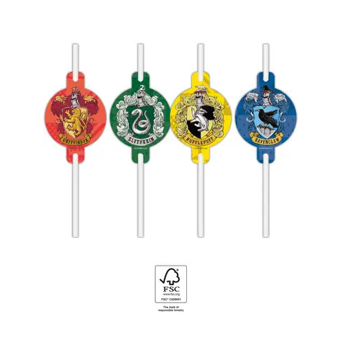 4db Papír szívószál HARRY POTTER HOGWARTS HOUSES