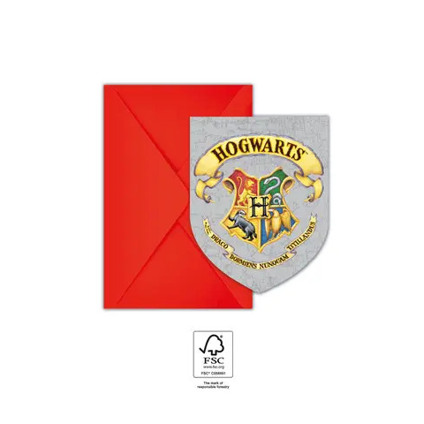 6db Születésnapi meghívó és boríték HARRY POTTER HOGWARTS HOUSES