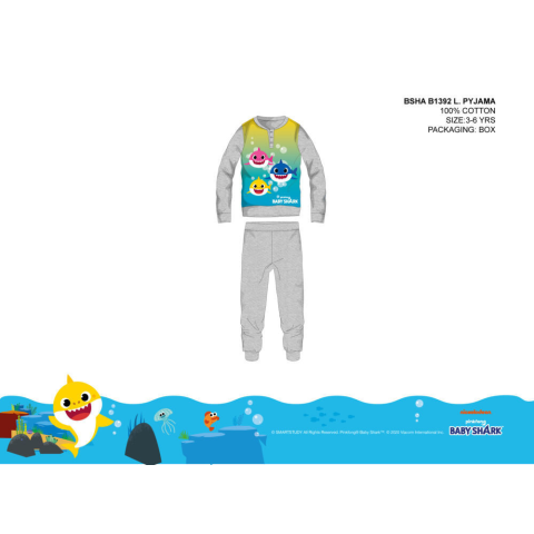 1 kép Global Licence Srl Baby Shark gyerek pizsama kisfiúknak - jersey pamut pizsama - szürke - 116