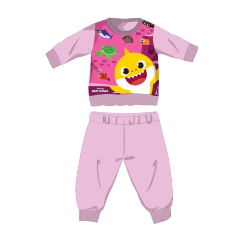 1 kép Global Licence Srl Baby Shark téli pamut baba pizsama - interlock pizsama - világosrózsaszín - 80