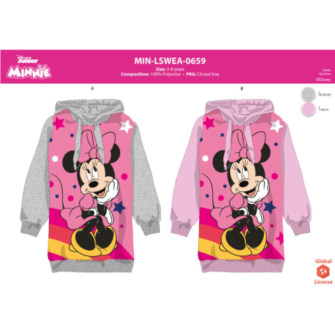 1 kép Global Licence Srl Disney Minnie egér kapucnis pulóver kislányoknak - világosrózsaszín - 128
