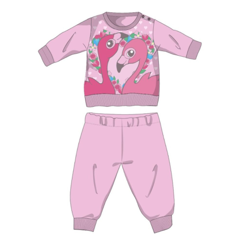 Flamingó téli pamut baba pizsama - interlock pizsama - világosrózsaszín - 80
