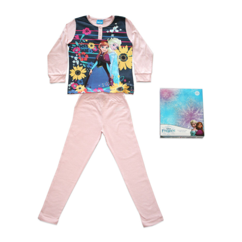 1 kép Global Licence Srl Hosszú vékony pamut gyerek pizsama - Jégvarázs - csíkos - Jersey - világosrózsaszín - 140