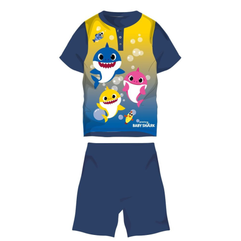 Baby Shark nyári rövid ujjú gyerek pizsama - pamut jersey pizsama - sötétkék - 104