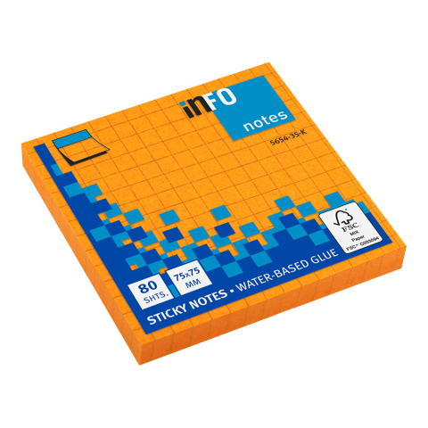 1 kép GLOBAL NOTES AMC AG Info Notes önt.jegyzettömb, 75x75mm, 80lap, kockás, brilliant narancs