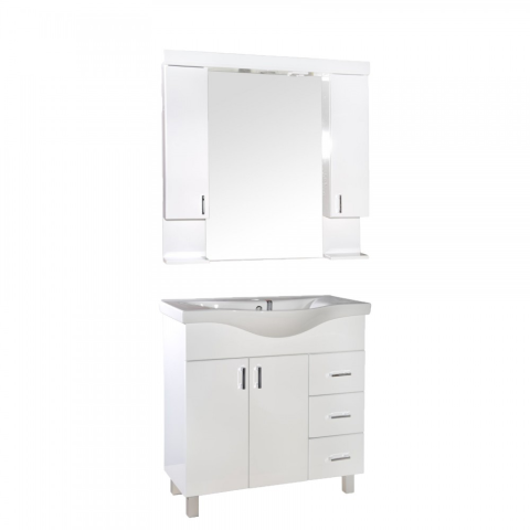 Viva STYLE Bianka 80 lábon álló fürdőszobabútor 3 fiókos Sanovit Albatros 10080 mosdókagyló 80 cm A Bianka 80 fehér színű MDF lapból készült fürdőszoba bútor. Nagy tároló kapacitással rendelkezik ahol kényelmesen elférnek a fürdőszobai pipere eszközök.A