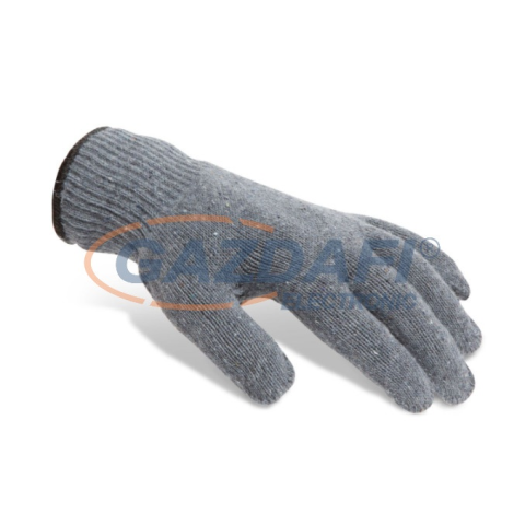 Csúszásmentes pamut kesztyű L Pamutból készült, gumis mandzsettájú kesztyű, csúszásmentes gumi pöttyözéssel a tenyerén. A kesztyű megfelel a 89/686/EGK sz. európai irányelvnek, valamint a harmonizált MSZ EN 420 szabványnak. Védelmi szint: Az EN388 sz