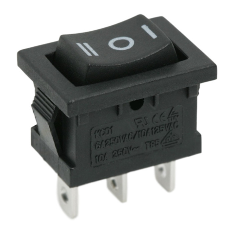 Billenő kapcsoló 1 áramkör 6 A - 250 V ON - OFF - ON I-O-II jelzéssel Beépíthető, fekete, 3 állású billenőkapcsoló. Széles körben használt, ideális lehet, műszaki gépek, elektromos eszközök kezelőpaneljén. Középső nyitott állás, és két szélső zárt jell