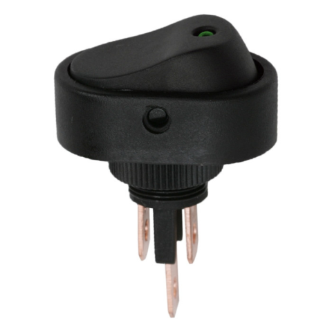 Billenő kapcsoló 1 áramkör 20 A - 12 V DC OFF - ON zöld LED-del Beépíthető fekete billenőkapcsoló leddel. Széles körben használt, ideális lehet autóban, elektromos eszközök kezelőpanelján. A visszajelző lednek köszönhetően könnyen megállapítható a kapc
