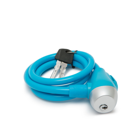 Kerékpár sodrony lakat (kábelzár). A bevont acélkábel ellenállóbb a vágó támadásokkal szemben. Minőségi zárszerkezet, 2 db kulccsal. Méret: 10 mm x 120 cm Szín: kék
