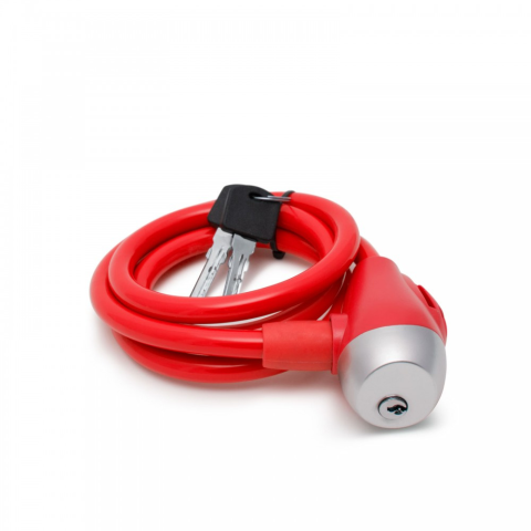 Kerékpár sodrony lakat (kábelzár). A bevont acélkábel ellenállóbb a vágó támadásokkal szemben. Minőségi zárszerkezet, 2 db kulccsal. Méret: 10 mm x 120 cm Szín: piros
