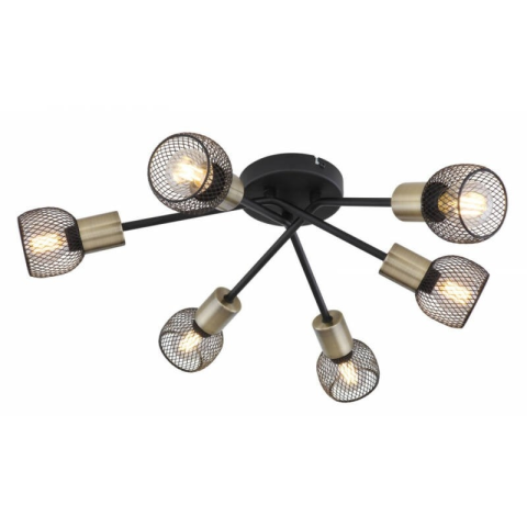 A Fém hálós csillár 6 foglalattal - Fiastra Globo 54028-6S egy modern mennyezeti lámpa, amelyet a Globo gyárt. A lámpatest fekete, sárgaréz és antikolt színekkel, valamint fém anyaghasználattal készül. Hat darab E14 foglalattal rendelkezik, amelyekbe tets