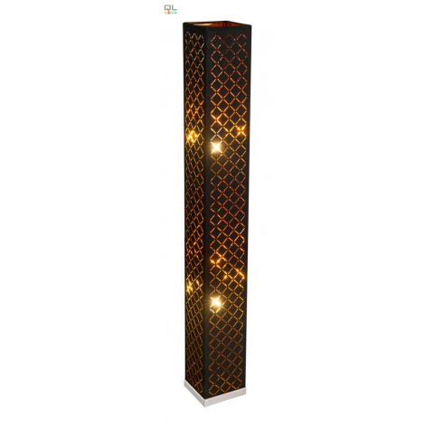 A Clarke modellsorozat négyzetes állólámpája (15 cm x 15 cm) egyedi, nemes formatervével tűnik fel. A 118 cm magas állólámpa alapvetően egy szép, lyuggatott díszítésekkel ellátott, fekete textilből áll, amelynek belső oldalát aranyfüst borítja. Ez a beltéri lámpa két E27-es foglalattal rendelkezik, amely lehetővé teszi, hogy tetszés szerint válasszon izzót (max. 40 W), és ezáltal a kívánt fényerősséget és színhőmérsékletet érje el. A szériatartozéknak