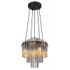 Függőlámpa, fém fekete matt, füstszínű üvegrudak, kábel PVC fekete, magasság rövidíthető, ø: 400mm, M: 1200mm, 5x E14 40W 230V izzók nélkül