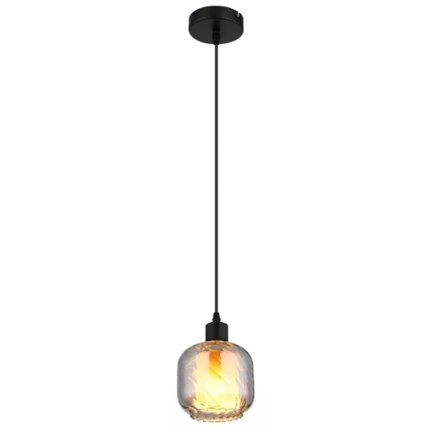 Függőlámpa, fém fekete matt, füstszínű üveg, fehér üveg, kábel PVC fekete, magassága rövidíthető, ø: 140mm, M: 1200mm, 1x E27 25W 230V izzó nélkül