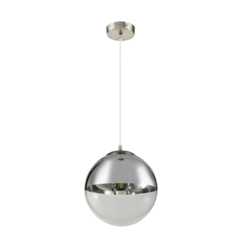 A Varus Globo 15853 függesztett lámpa modern stílusú világítótest, amely 30 cm átmérővel és 120 cm magassággal rendelkezik. A lámpa teste fémből és áttetsző üvegből készült, ezüst színben, így letisztult megjelenést biztosít bármely lakótérben. Egy darab