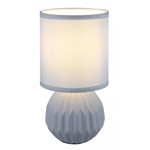 Asztali lámpa, kerámia kék, textil kék, kábel PVC fehér, billenőkapcsoló a kábelen, ø: 120mm, M: 230mm, kábel hossza 1300mm, 1x E14 40W 230V izzó nélkül