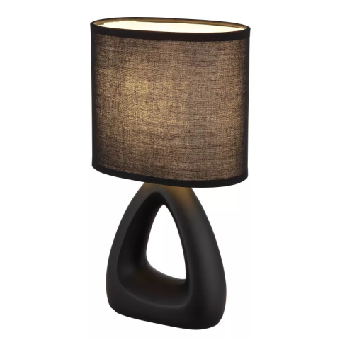 Asztali lámpa, kerámia fekete, textil fekete, kábel PVC fekete, billenőkapcsoló a kábelen, HxSzxM: 170x100x300mm, kábel hossza 1300mm, 1x E14 40W 230V izzó nélkül
