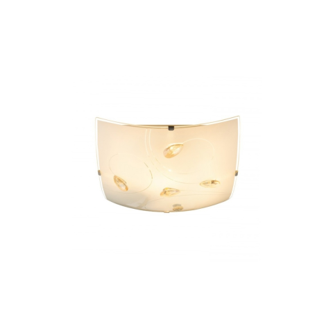 A Taveuni Globo 40393 mennyezeti lámpa modern stílusban készült, fehér és borostyán színű kivitelben. A lámpatest anyaga fém, üveg és kristály, a kristály elemek műanyagból készültek. Egy darab E27 foglalattal rendelkezik, a fényforrás cserélhető, azonban