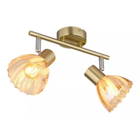 Fali spotlámpa, fém sárgaréz színű matt, króm, borostyánszínű üveg, szatírozott, elfordítható, HxSzxM: 250x130x190mm, 2x E14 40W 230V izzók nélkül