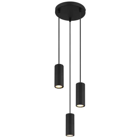 Függőlámpa, fém fekete matt, alumínium fekete matt, kábel PVC fekete, magassága rövidíthető, ø: 210mm, M: 1200mm, 3x GU10 25W 230V, 230V izzók nélkül