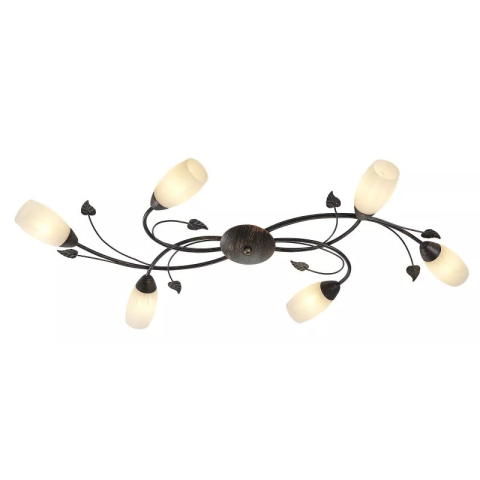 Mennyezeti lámpa, fém rozsdaszínű, alabástrom megjelenésű üveg, HxSzxM: 550x1060x220mm, 6x E14 40W 230V izzók nélkül