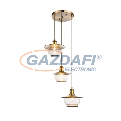 1 kép GLOBO 69030-3H NEVIS Függeszték, bronz , üveg, BxH:445x1500, exkl. 3xE27 60W 230V
